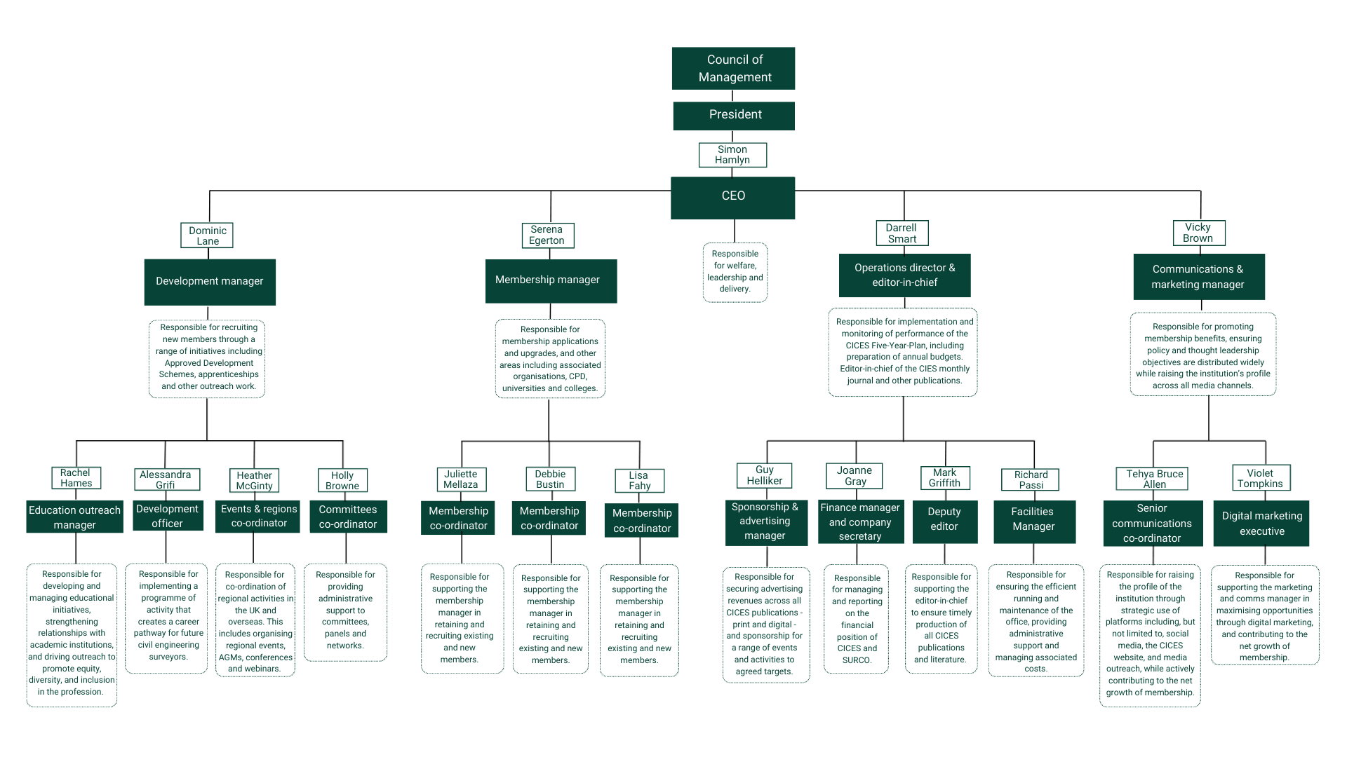 With expertise across various disciplines, CICES staff play a vital role in implementing strategic goals, upholding professional standards and delivering value to members across the globe.